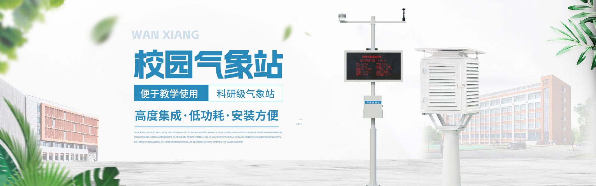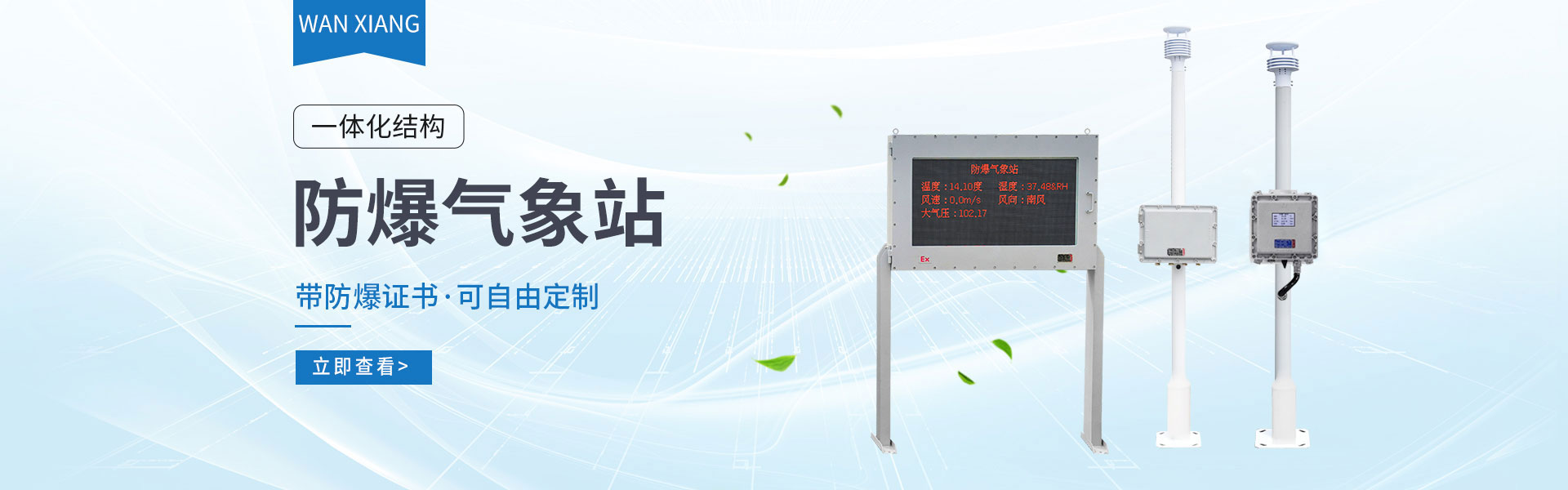 山東萬象環(huán)境科技有限公司官網(wǎng)主要產(chǎn)品有防爆氣象站,校園氣象站,農(nóng)業(yè)氣象站,負氧離子監(jiān)測站,超聲波氣象站,歡迎咨詢19853697985!